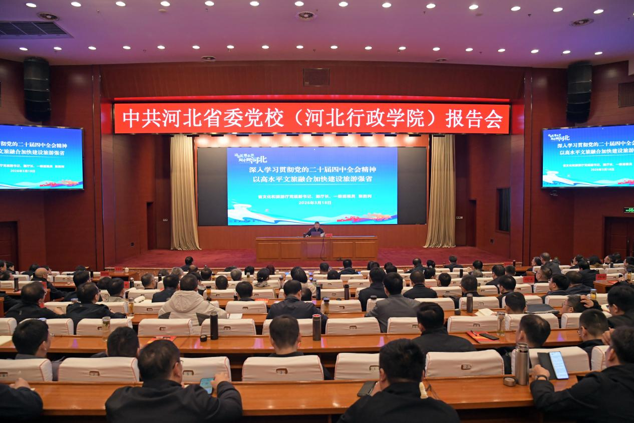 中共河北省委党校>>3月18日上午,省文化和旅游厅党组副书记、副厅长、一级巡视员张胜利到省委党校(河北行政学院)作了题为《深入学习贯彻党的二十届四中全会精神 以高水平文旅融合加快建设旅游强省》的专题报告。